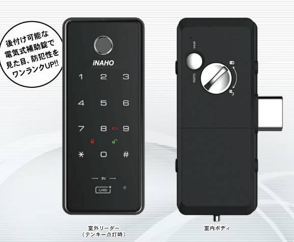 暗証番号式の補助錠です。スウェードアや防音扉にも設置可能です。